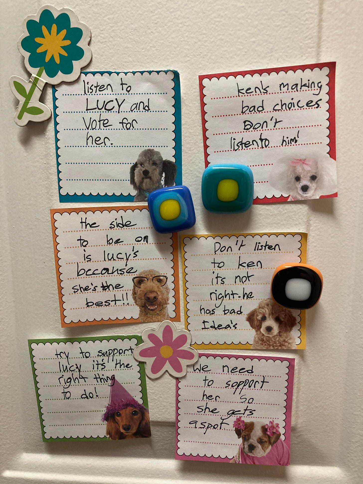 You can’t bring stickers and buttons into your house without your nine-year-old getting involved. And after maybe three minutes of me explaining city politics, Lucy and the bad mayor, my daughter was all in. She decorated our door with flyers and her own campaign slogans, musing “Maybe I should do this for a job!”